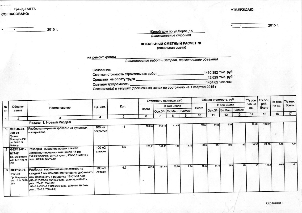 Здесь вы можете ознакомиться со сметой капремонта крыши, представленной ООО "Курганстрой".